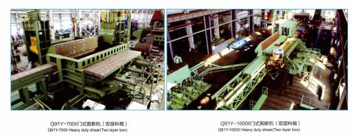 The double-layer material box model is mainly used to pack and press various degrees of metal components with dimensions less than 7500×2500×1500mm(L×W×H) to form a certain density of the mass, so that the thin material becomes a shear heavy material by extrusion shear processing. The counter control module is used to adjust the feeding length by changing the count, and the foot is broken into the ideal size of the backer. It has a wide cutting edge of 1050mm, and the hanging anti-cutting width can reach 1000mm. Especially suitable for shear loose steel materials.